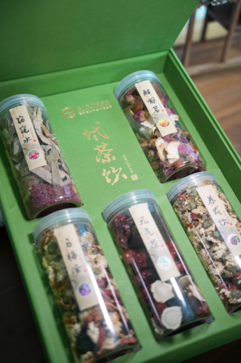 活動(dòng)現(xiàn)場(chǎng)設(shè)置了20個(gè)展臺(tái),邀請(qǐng)各中醫(yī)醫(yī)療機(jī)構(gòu)、中醫(yī)藥相關(guān)企業(yè)展覽展示四川中醫(yī)藥大健康產(chǎn)品,其中一個(gè)展臺(tái)的主人翁便是瀘州市中醫(yī)醫(yī)院。展臺(tái)上,藥膳、中藥代茶飲、香囊、頸椎枕等引人注目。僅中藥代茶飲就有六種:清咽利喉飲,烏梅湯、窈窕水、元?dú)獠琛⒔鈶n茗、舒目香,根據(jù)所制中藥材不同,茶飲具有減脂、明目等不同作用。