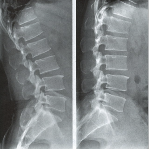 腰椎側(cè)位片是評(píng)價(jià)腰椎生理曲度、椎間盤高度以及椎體穩(wěn)定性的重要依據(jù)。