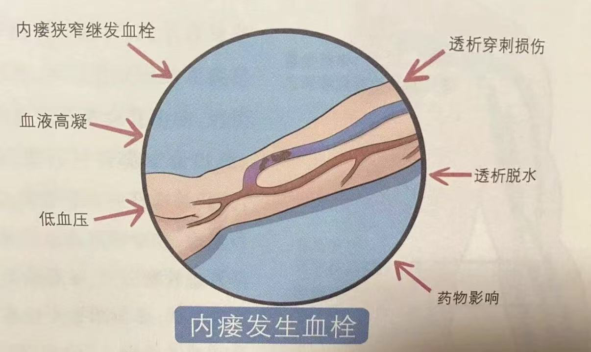 內(nèi)瘺堵塞就是內(nèi)瘺里有血栓形成了,血栓堵住了內(nèi)血管,導致無法透析。