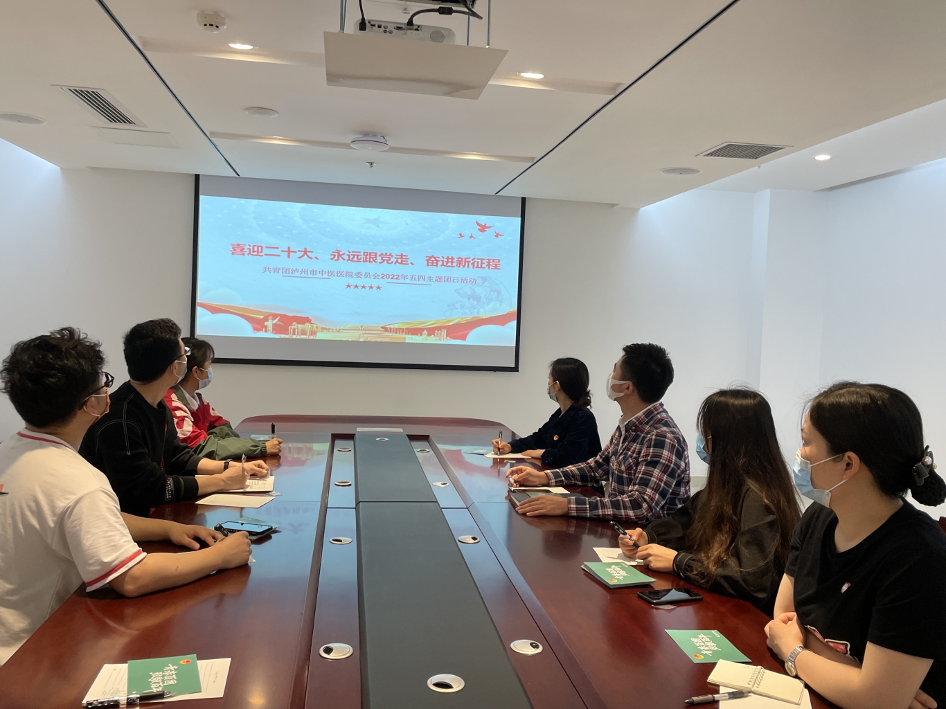 為熱烈慶祝中國共產(chǎn)主義青年團(tuán)成立100周年,進(jìn)一步加強(qiáng)醫(yī)院團(tuán)員青年思想政治建設(shè),增強(qiáng)團(tuán)員青年隊(duì)伍凝聚力、向心力、號(hào)召力,4月28日,瀘州市中醫(yī)院團(tuán)委組織青年團(tuán)員代表在城南院區(qū)行政綜合樓3樓會(huì)議室開展“青春百團(tuán)·致敬百年”五四主題團(tuán)日活動(dòng)。