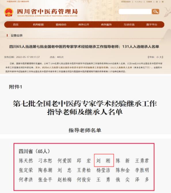 劉剛,主任中醫(yī)師。第七批全國(guó)老中醫(yī)藥專(zhuān)家學(xué)術(shù)經(jīng)驗(yàn)繼承工作指導(dǎo)老師,第四批和第五批四川省老中醫(yī)藥專(zhuān)家學(xué)術(shù)經(jīng)驗(yàn)繼承工作指導(dǎo)老師。瀘州市首屆十大名中醫(yī)。