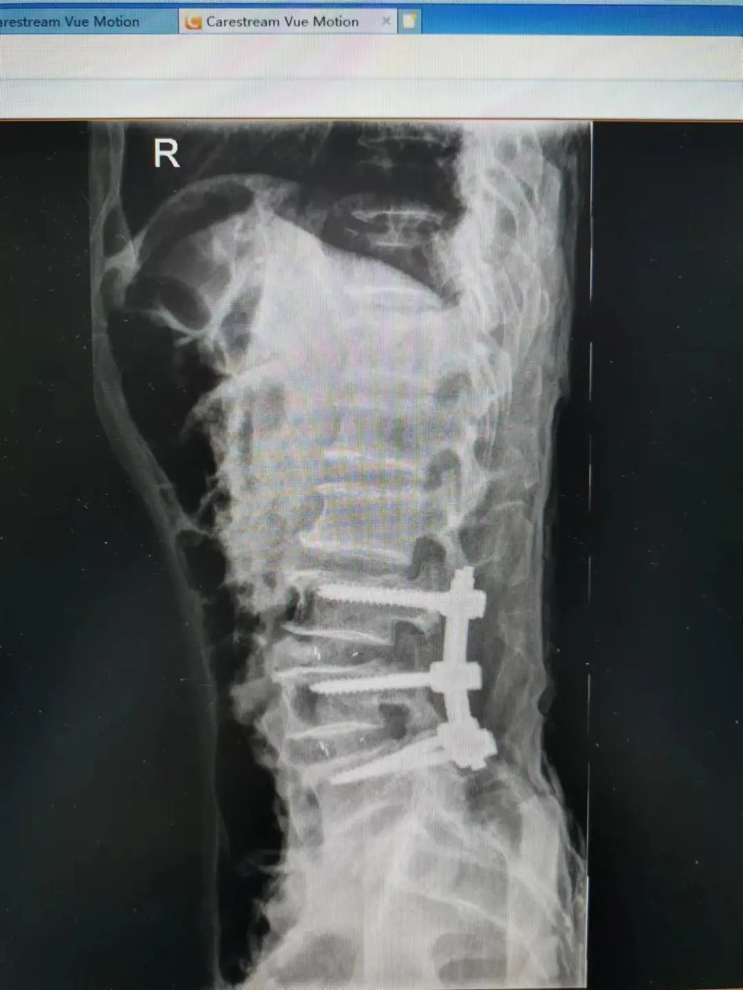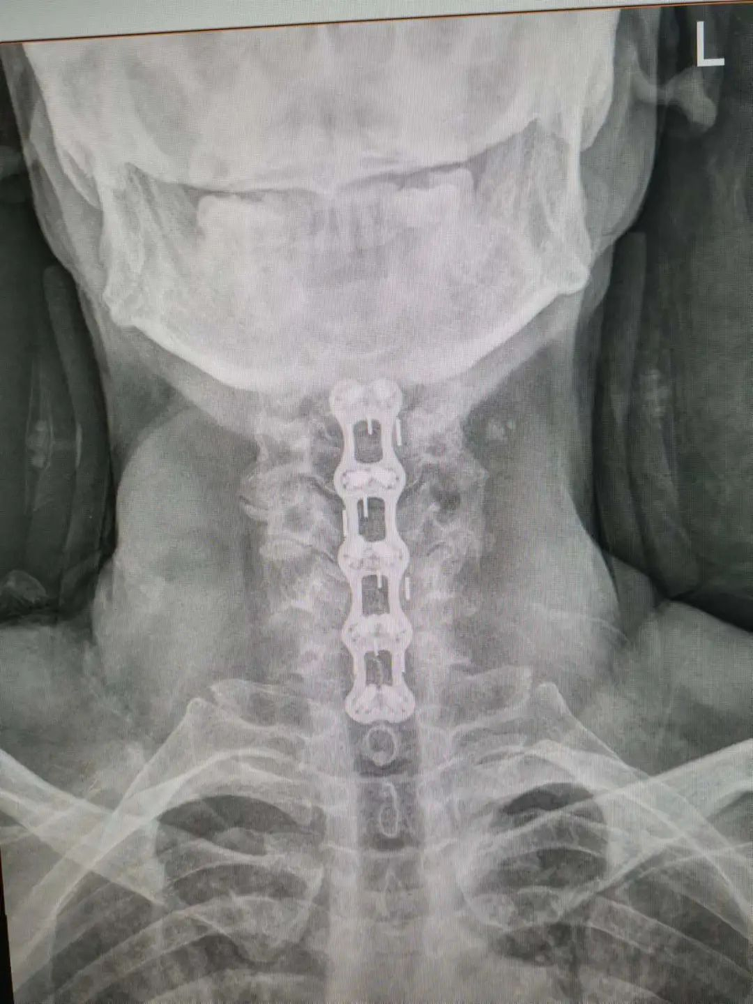 由于楊先生的病情嚴重,需住院治療。楊先生入院后,瀘州市中醫(yī)醫(yī)院骨傷二科科主任楊陳一制定了手術(shù)計劃,決定脊髓型頸椎病的手術(shù)從前路切開減壓,頸3/4 、頸4/5、 頸5/6、 頸6/7椎間盤切除,椎間融合,鋼板內(nèi)固定術(shù)手術(shù),而腰椎管狹窄癥經(jīng)后路切開減壓,腰3/4、腰4/5椎同盤動除,椎間融合、釘棒系統(tǒng)內(nèi)固定術(shù)。