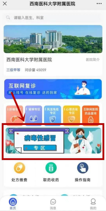 ▲西南醫(yī)科大學(xué)附屬醫(yī)院互聯(lián)網(wǎng)醫(yī)院病毒性感冒專區(qū)