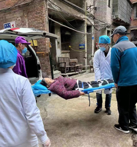 ▲鄉(xiāng)村急救轉(zhuǎn)運(yùn)服務(wù)隊(duì)在轉(zhuǎn)運(yùn)病患