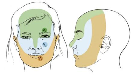 經(jīng)過面部口角處將射頻針穿刺到三叉神經(jīng)半月節(jié)內(nèi),通過射頻針發(fā)熱,選擇性毀損單支感覺神經(jīng),保留運(yùn)動神經(jīng),達(dá)到止痛目的,術(shù)后面部稍麻木。